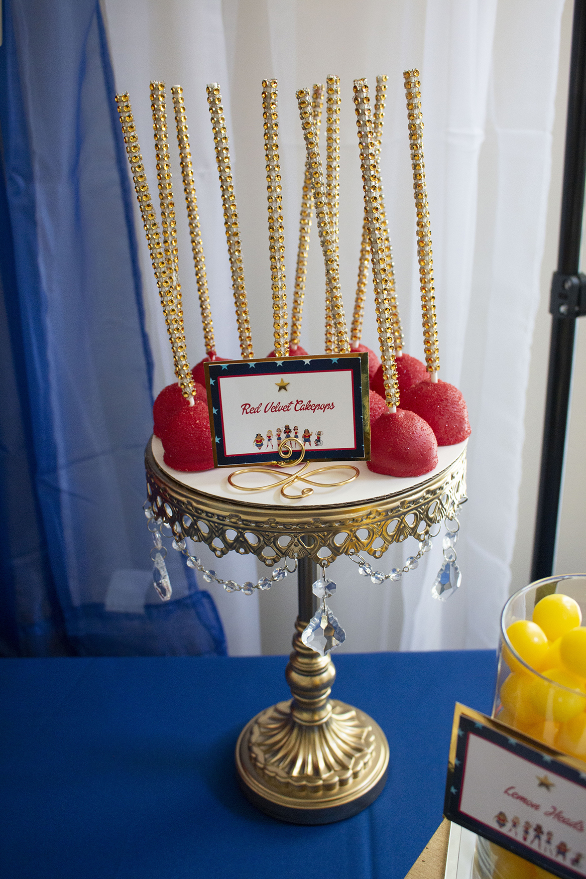 We filled the bar with the birthday girl’s favorite treats – custom wrapped Hersey bars, brownies, cake pops, peanut butter cups, and lemonheads. We called in local vendors to help us with the baked goods!