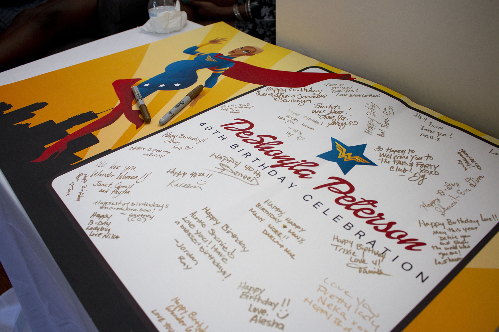 This table was personal. When my linesister called to hire for her cousin’s 40th birthday party, I was honored. This table was to celebrate a modern-day Wonder Woman – Deshonjla “Shonni” Peterson. Deshonjla or Shonni had been diagnosed with breast cancer earlier in the year and found out she was pregnant with her second child shortly thereafter. Shonni’s family wanted to celebrate her birthday in a special way and the dessert table would be the centerpiece of the celebration.